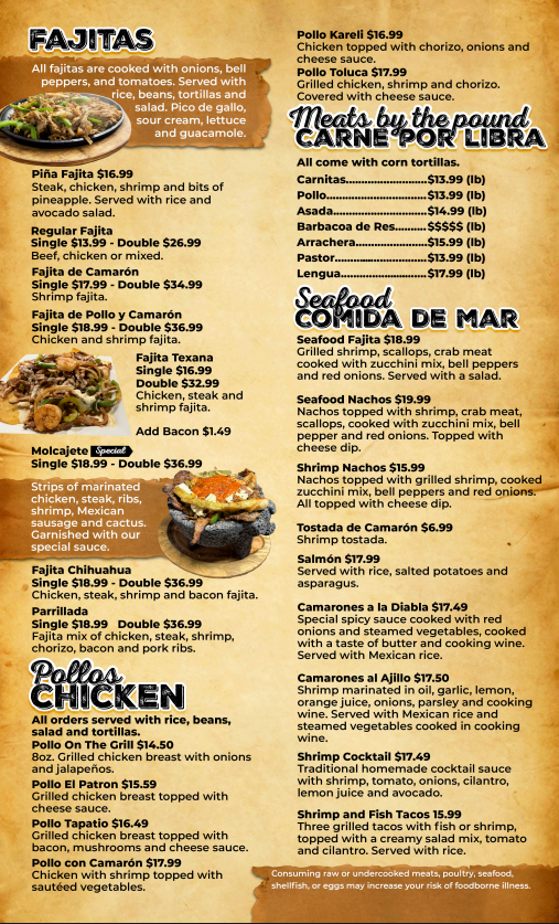 - Signature Dishes: Savor the Steak & Shrimp cooked with a medley of onions and jalapeños, or indulge in the hearty Parrillada platter featuring an array of meats.